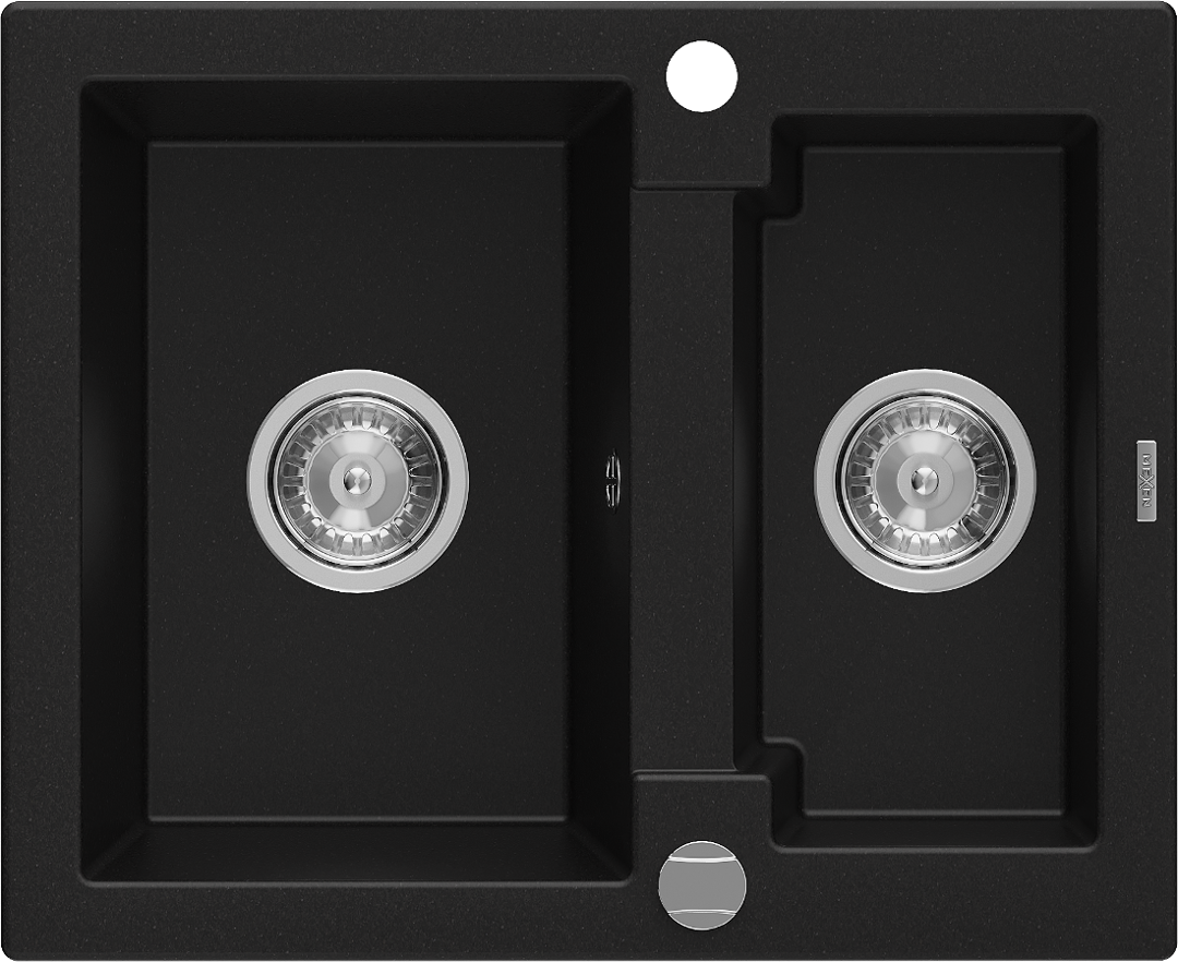 Mexen Carlos évier en granit 1,5 cuves 582 x 475 mm, noir, siphon chromé - 6518581500-77