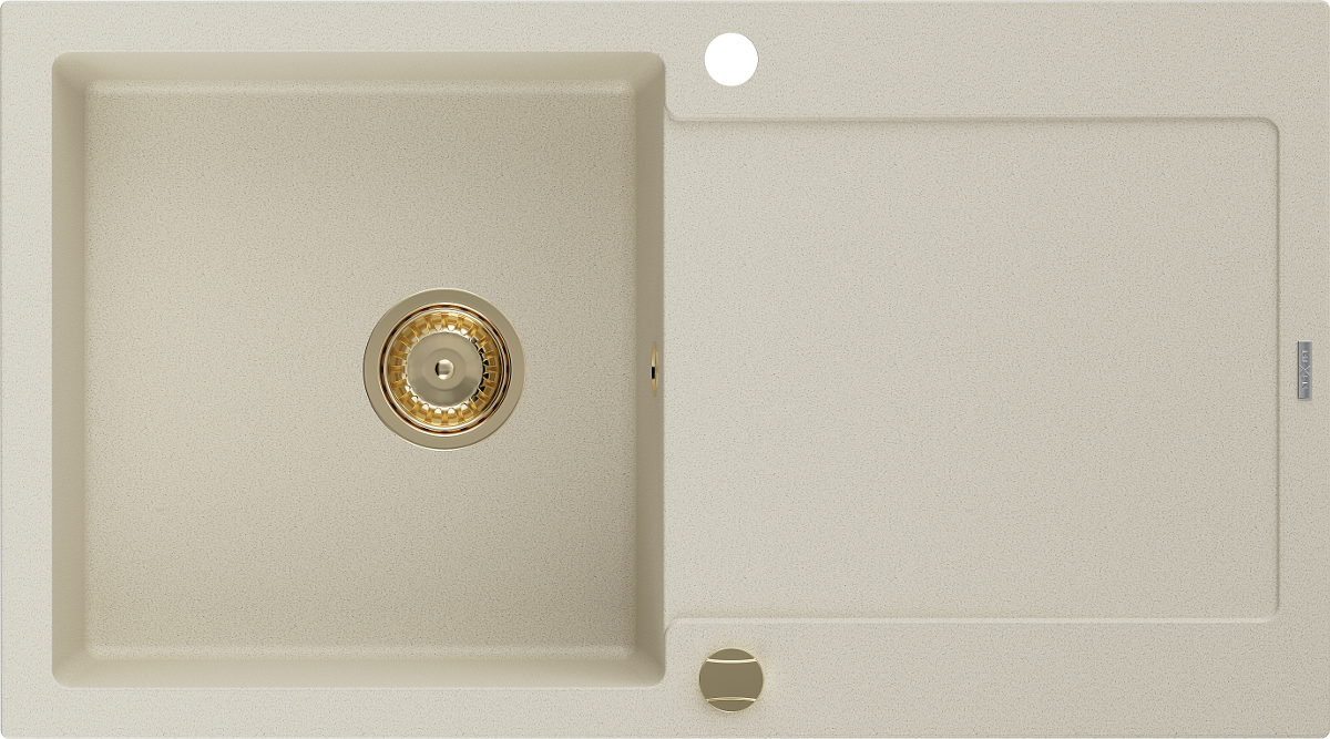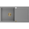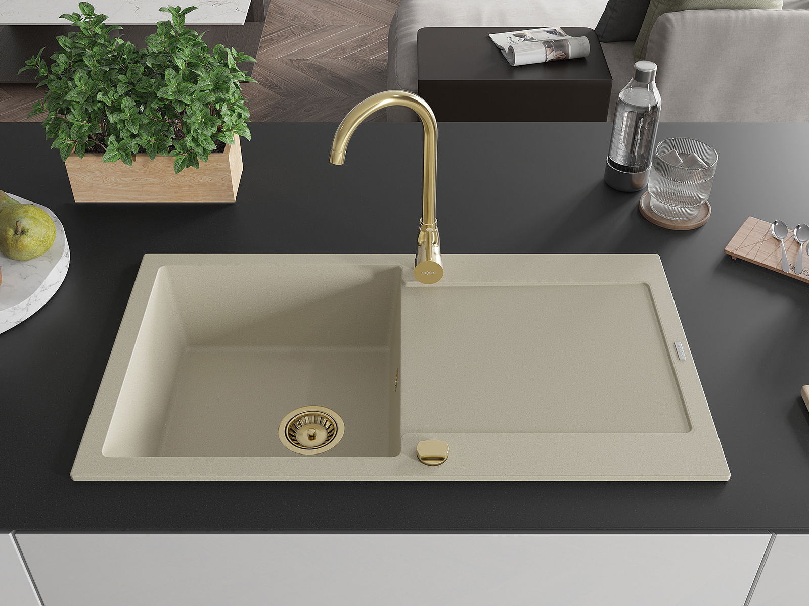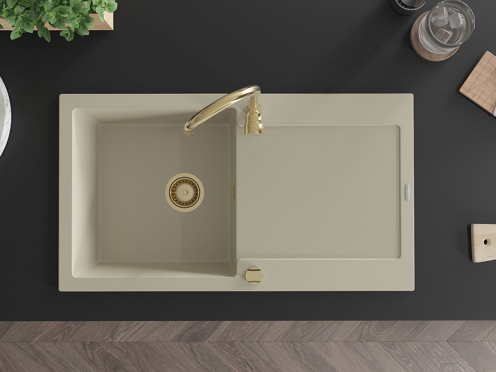 Mexen Leo évier en granit 1 bac avec égouttoir 900 x 500 mm, beige, siphon doré - 6501901010-69-G