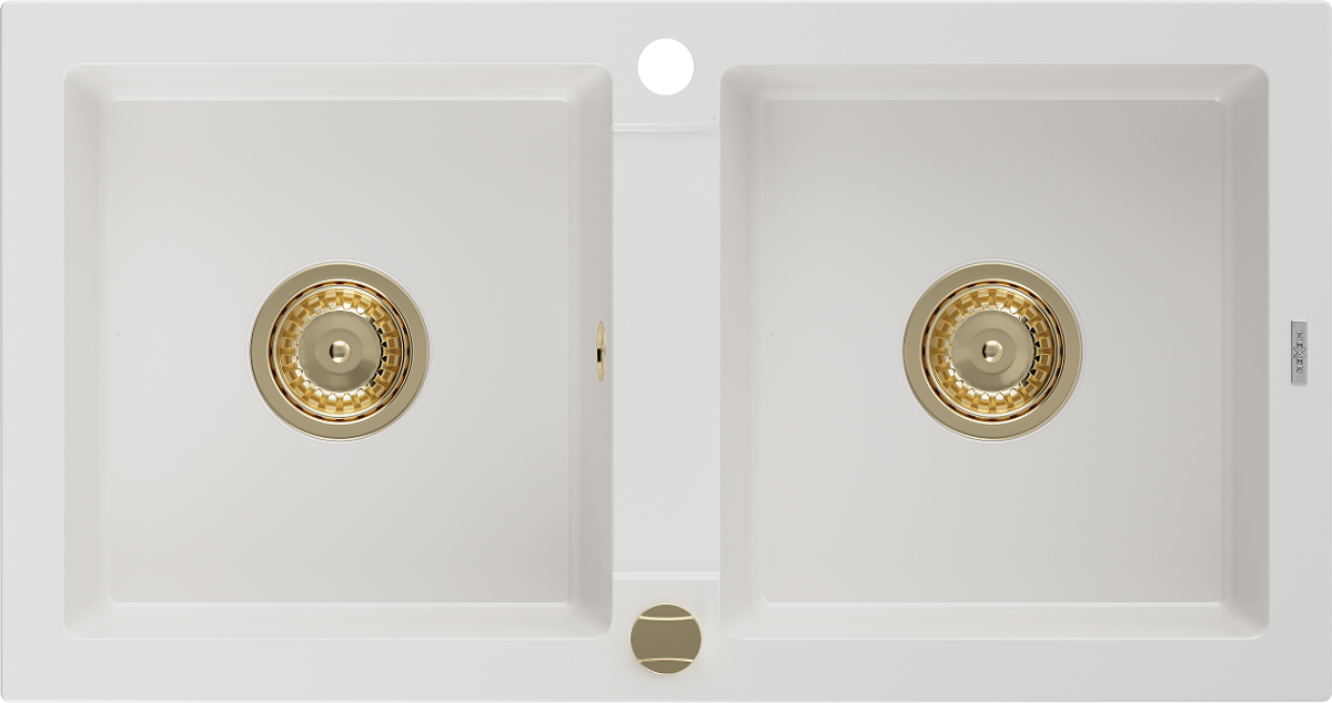 Mexen Mario évier en granit à 2 bacs 820 x 436 mm, blanc, siphon doré - 6504822000-20-G