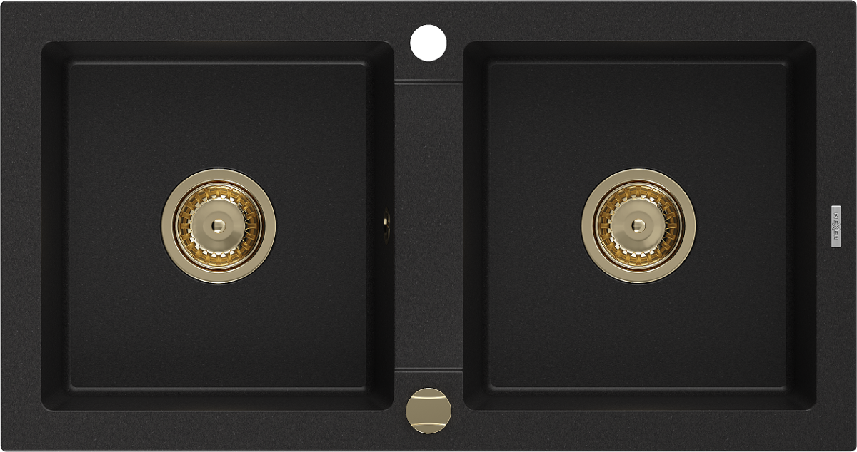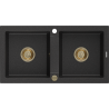 Mexen Mario évier en granit 2 bacs 820 x 436 mm, noir, siphon doré - 6504822000-77-G