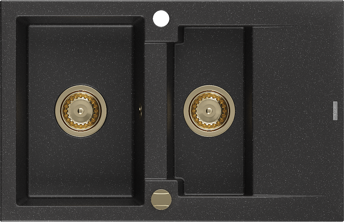 Mexen Gaspar évier en granit 1,5 bac avec égouttoir 737 x 475 mm, noir/métallisé argenté, siphon doré - 6507731505-73-G