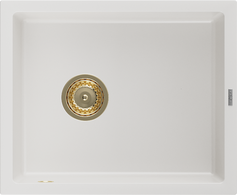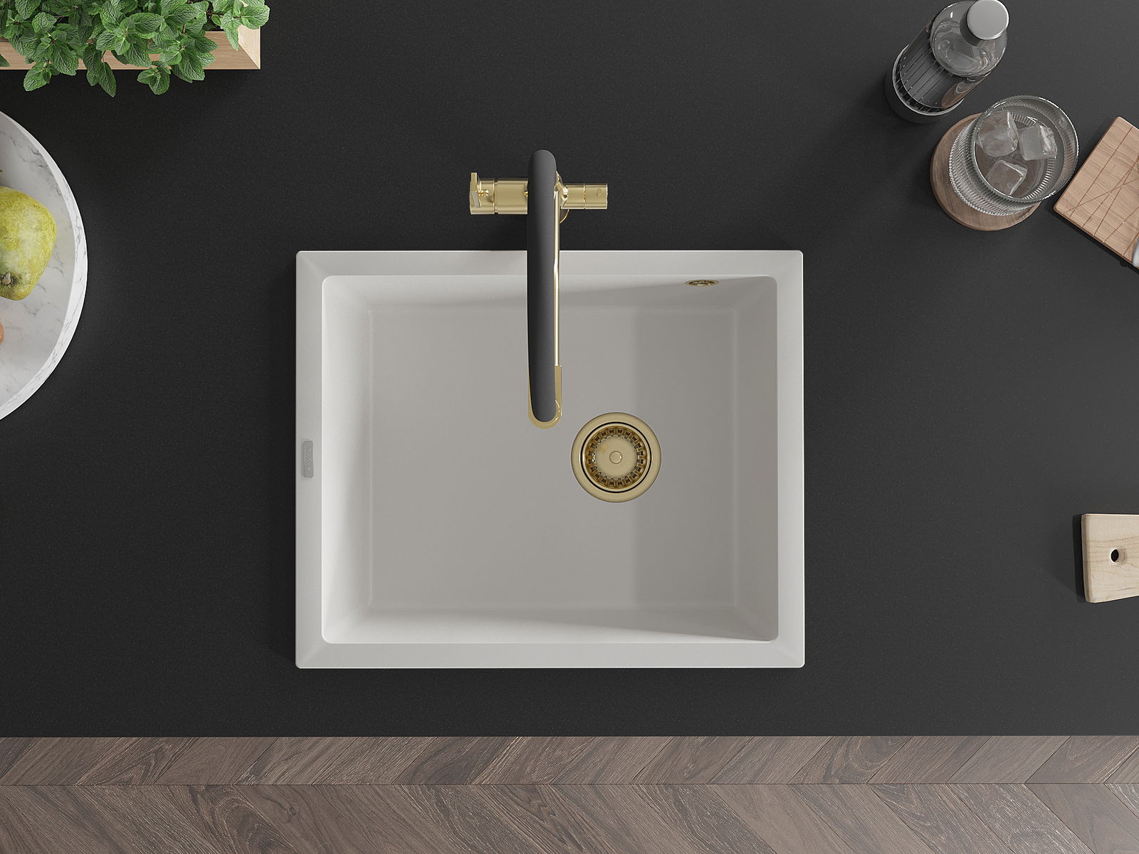 Mexen Pedro évier en granit 1 bac 560 x 460 mm, blanc, siphon doré - 6508561000-20-G