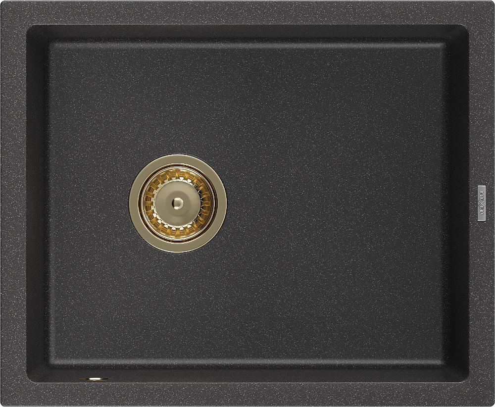 Mexen Pedro évier en granit 1 bac 560 x 460 mm, noir moucheté, siphon doré - 6508561000-76-G