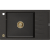 Mexen Elias évier en granit 1 cuve avec égouttoir 795 x 480 mm, noir/argent métallisé, siphon doré - 6511791005-73-G
