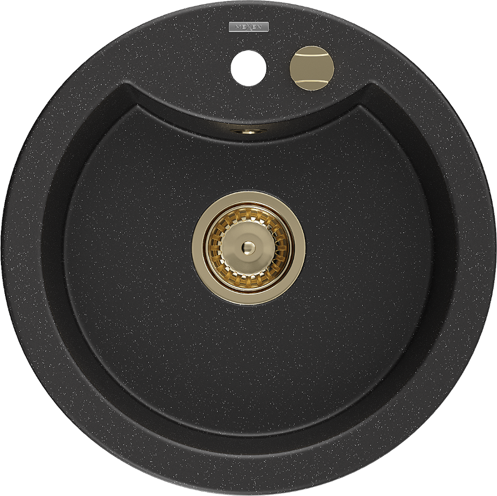 Mexen Diego évier en granit 1 bac 488 x 480 mm, noir/métallisé argent, siphon doré - 6512481000-73-G