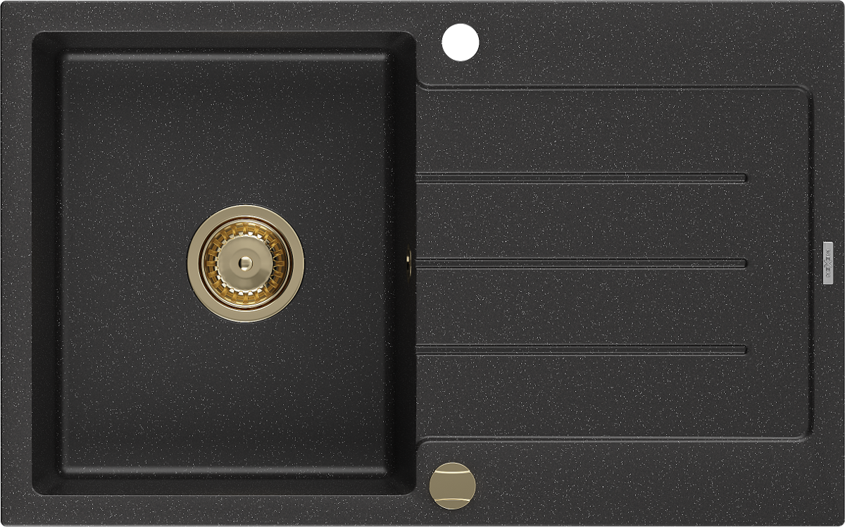 Mexen Bruno évier en granit 1 bac avec égouttoir 795 x 495 mm, noir/métallique argenté, siphon doré - 6513791010-73-G