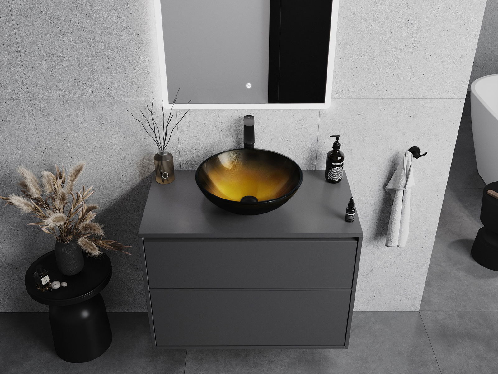 Mexen Mira lavabo en verre à poser 42 x 42 cm, or foncé - 24124251