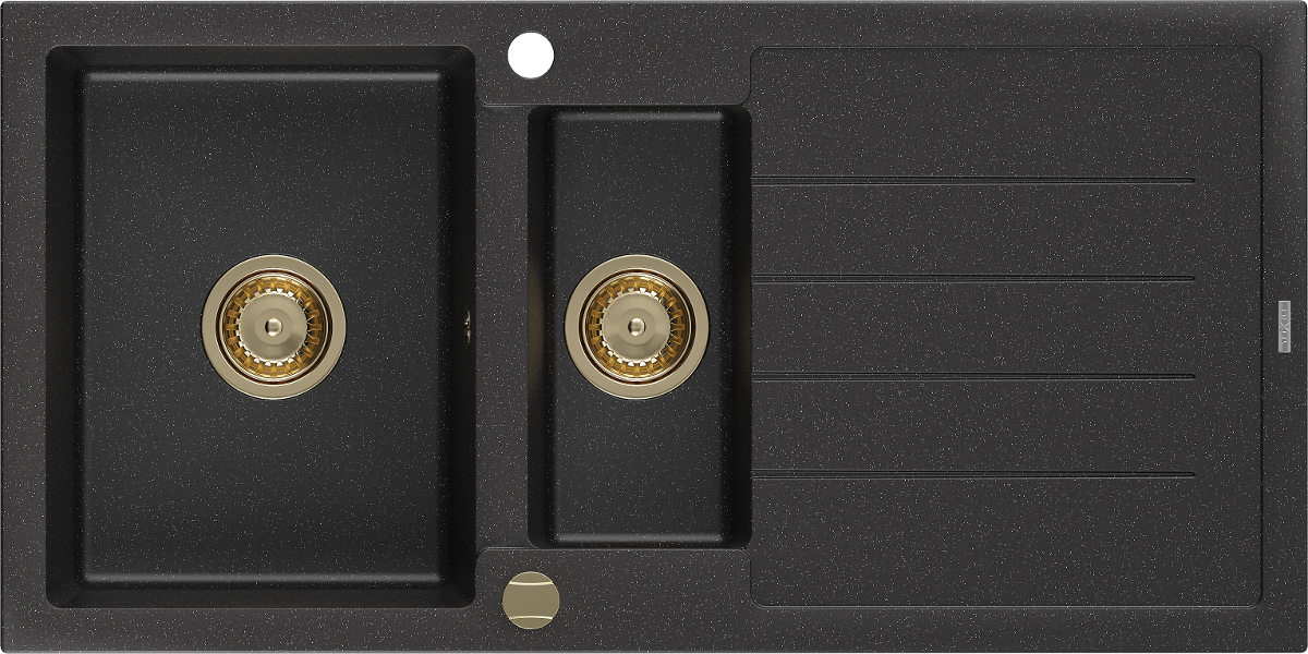 Mexen Andres évier en granit 1,5 bac avec égouttoir 1000 x 500 mm noir/argent métallique, siphon doré - 6515101510-73-G