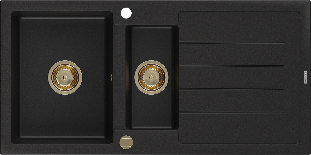 Mexen Andres évier en granit 1,5 bac avec égouttoir 1000 x 500 mm noir, siphon doré - 6515101510-77-G