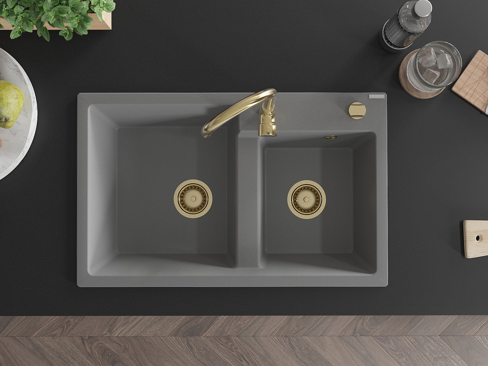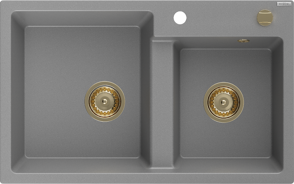 Mexen Tomas évier en granit 2 bacs 800 x 500 mm, gris, siphon doré - 6516802000-71-G