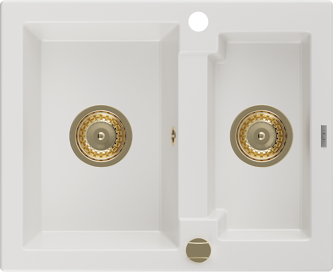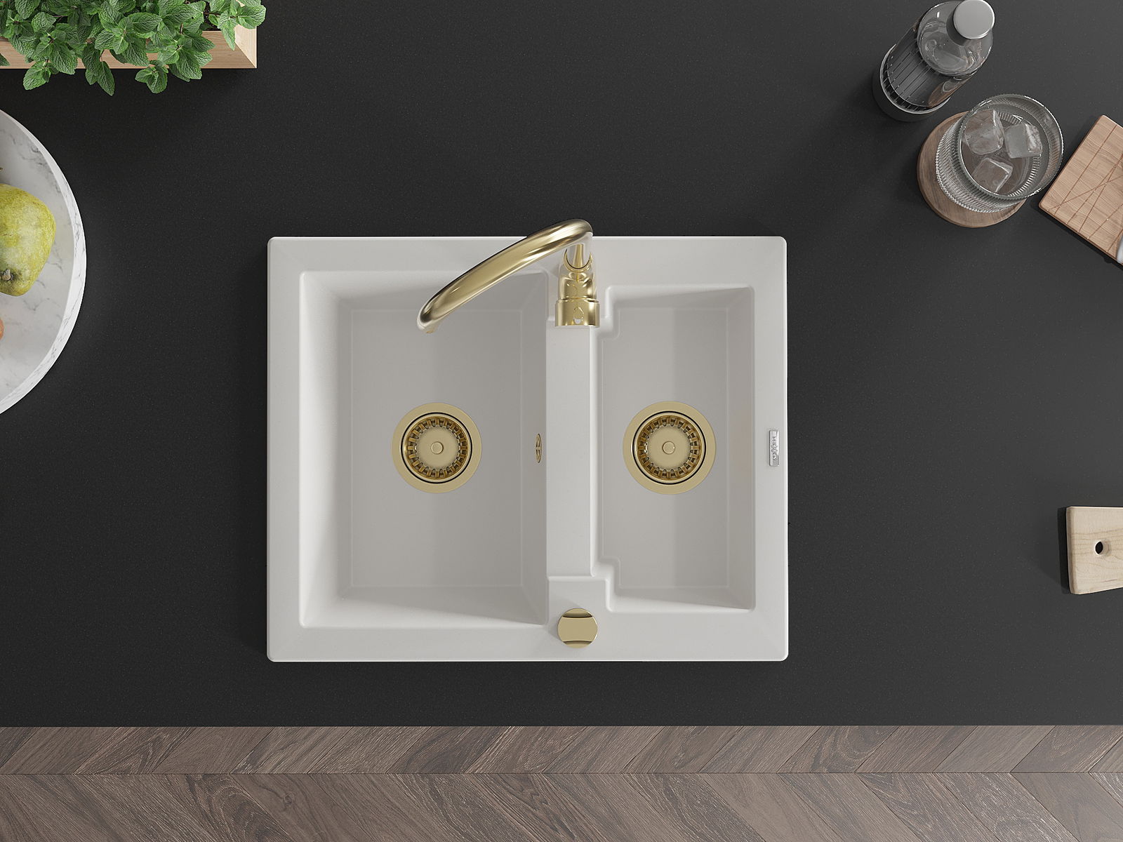 Mexen Carlos évier en granit 1,5-bac 582 x 475 mm, blanc, siphon doré - 6518581500-20-G