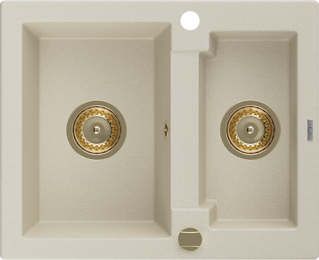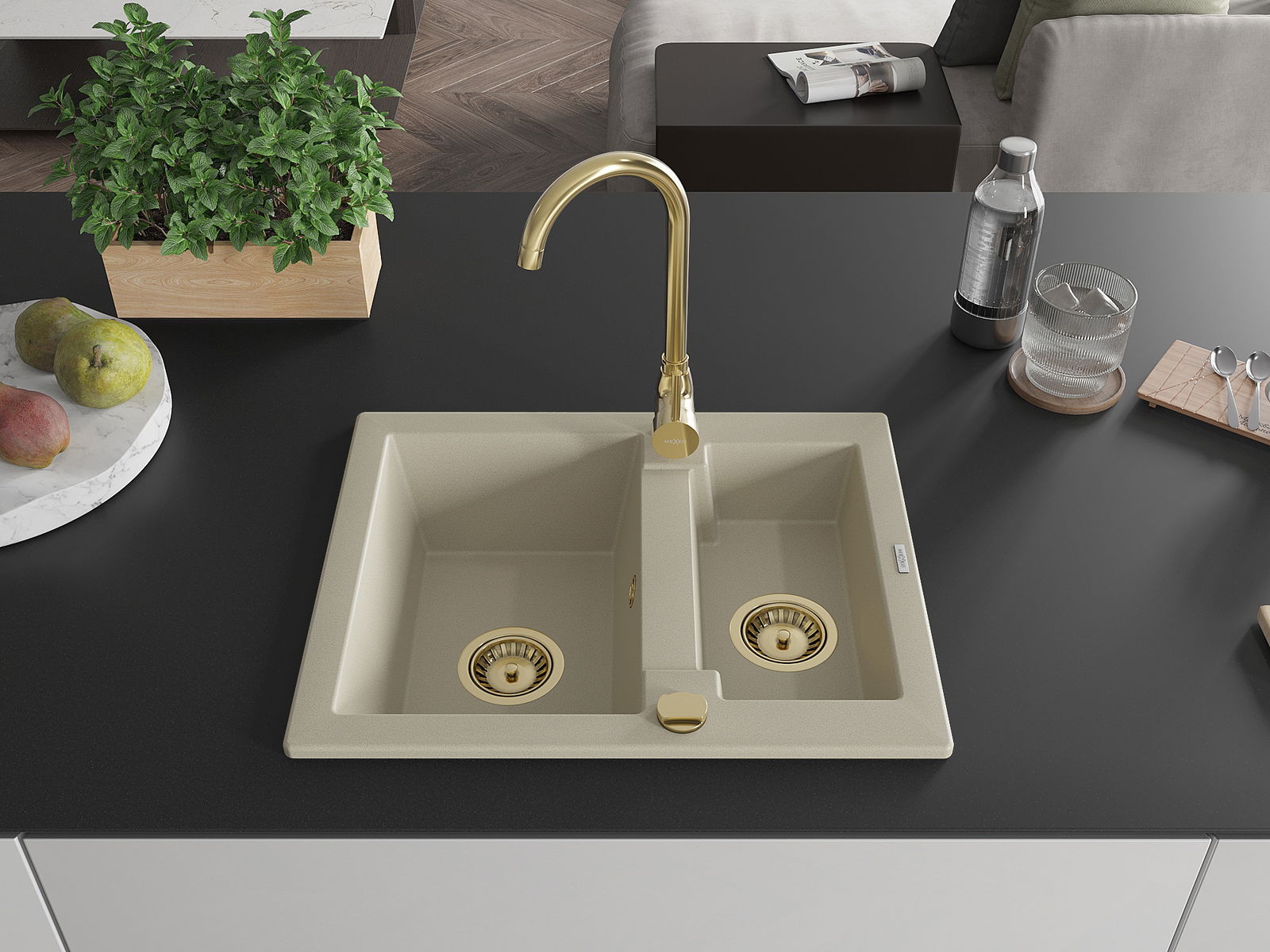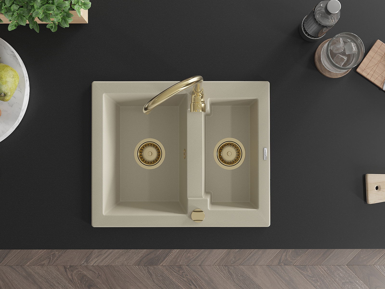 Mexen Carlos évier en granit 1,5 bac 582 x 475 mm, beige, siphon doré - 6518581500-69-G