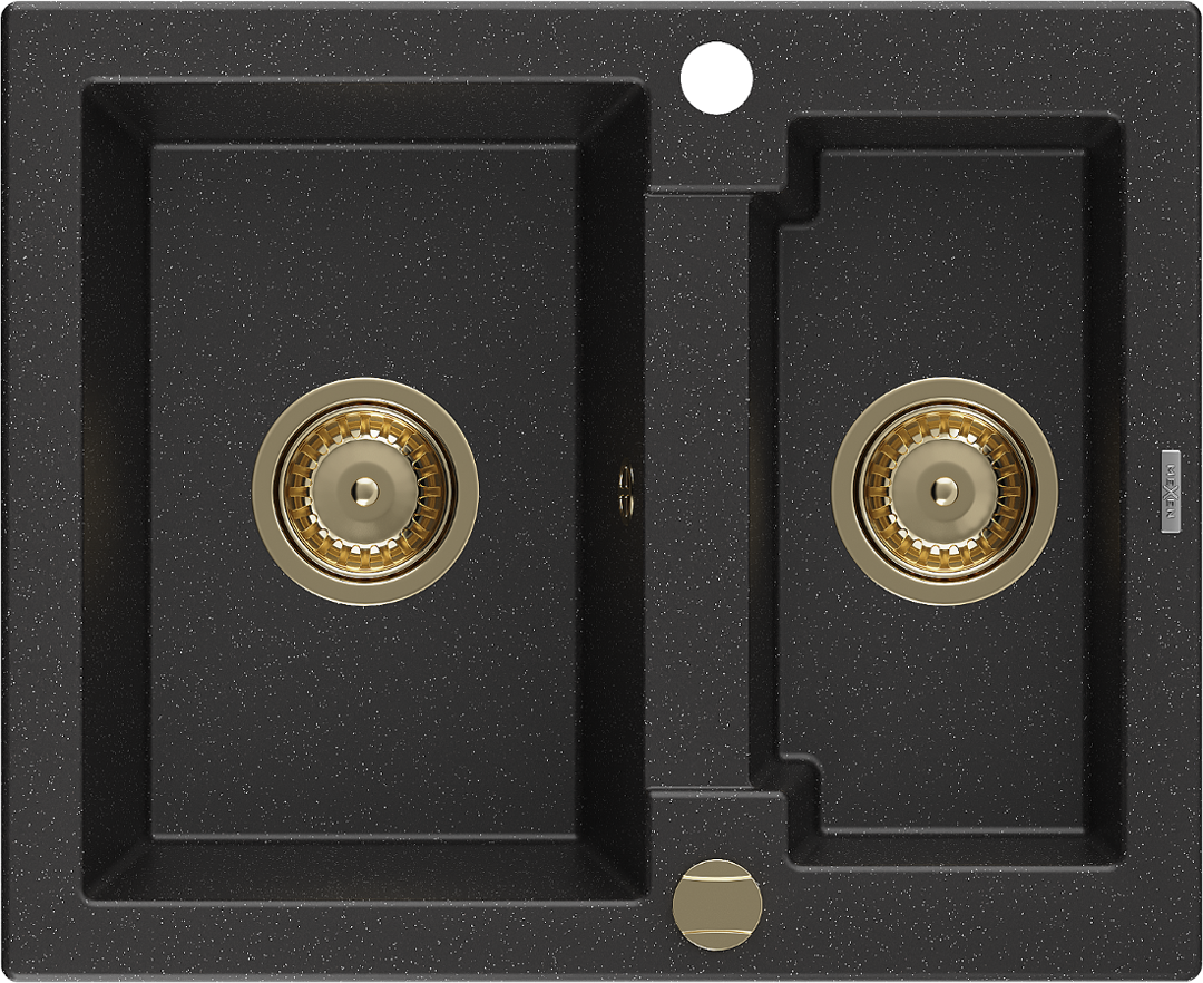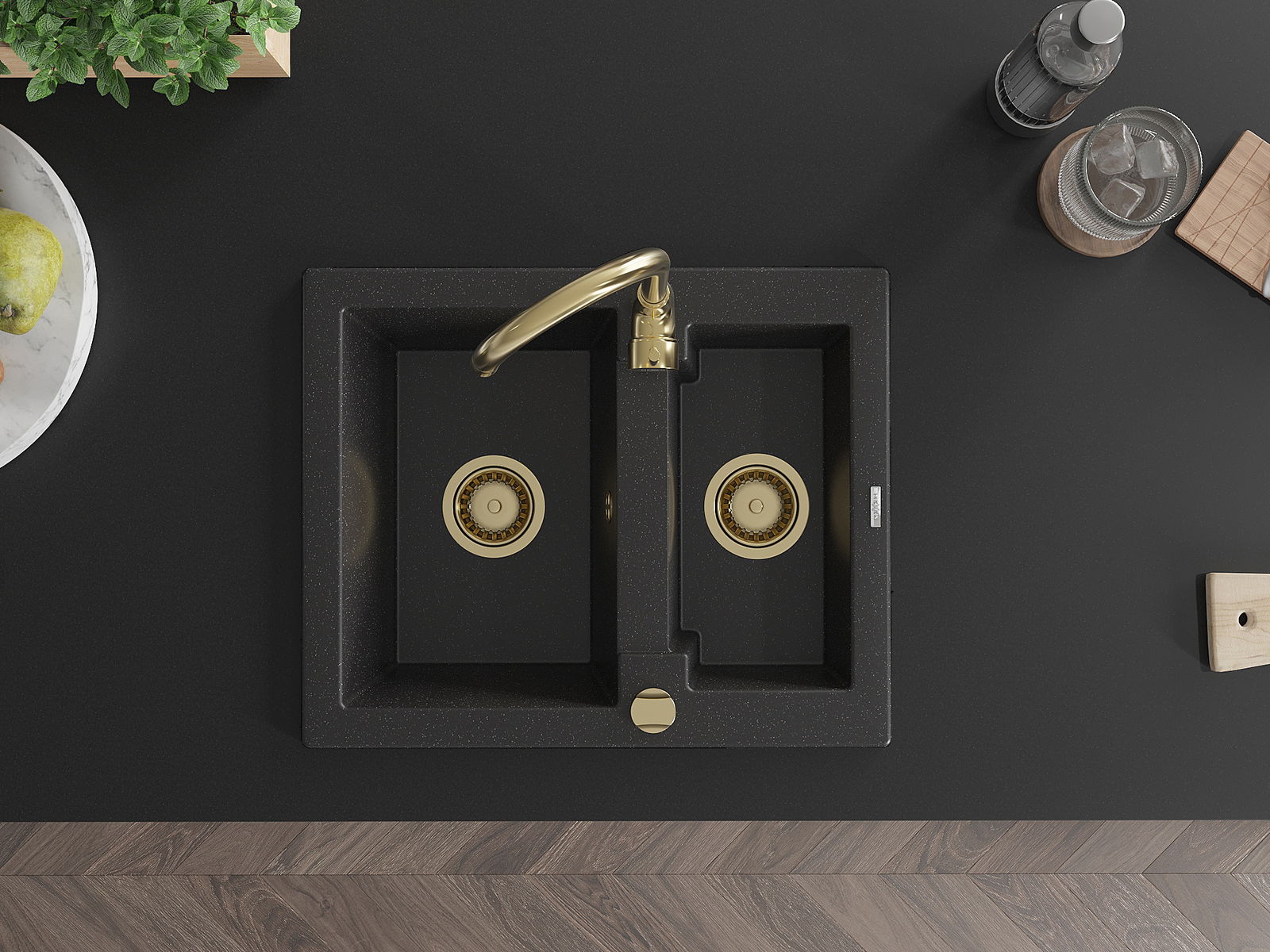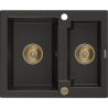 Mexen Carlos évier en granit 1,5 bac 582 x 475 mm, noir/argent métallisé, siphon doré - 6518581500-73-G
