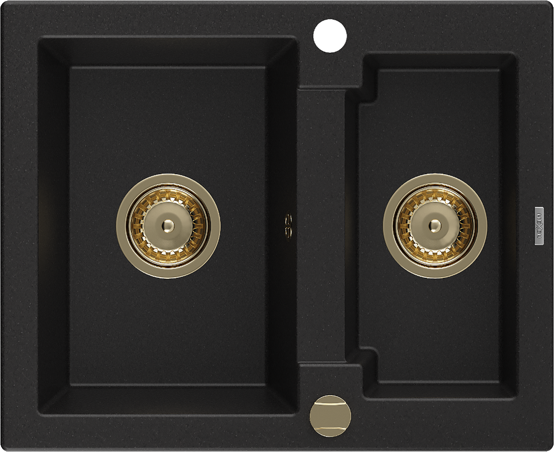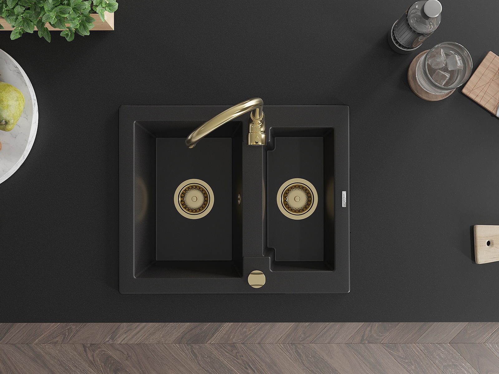 Mexen Carlos évier en granit 1,5 bac 582 x 475 mm, noir, siphon doré - 6518581500-77-G
