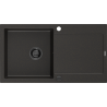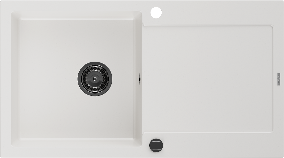 Mexen Leo évier en granit 1 bac avec égouttoir 900 x 500 mm, blanc, siphon noir - 6501901010-20-B
