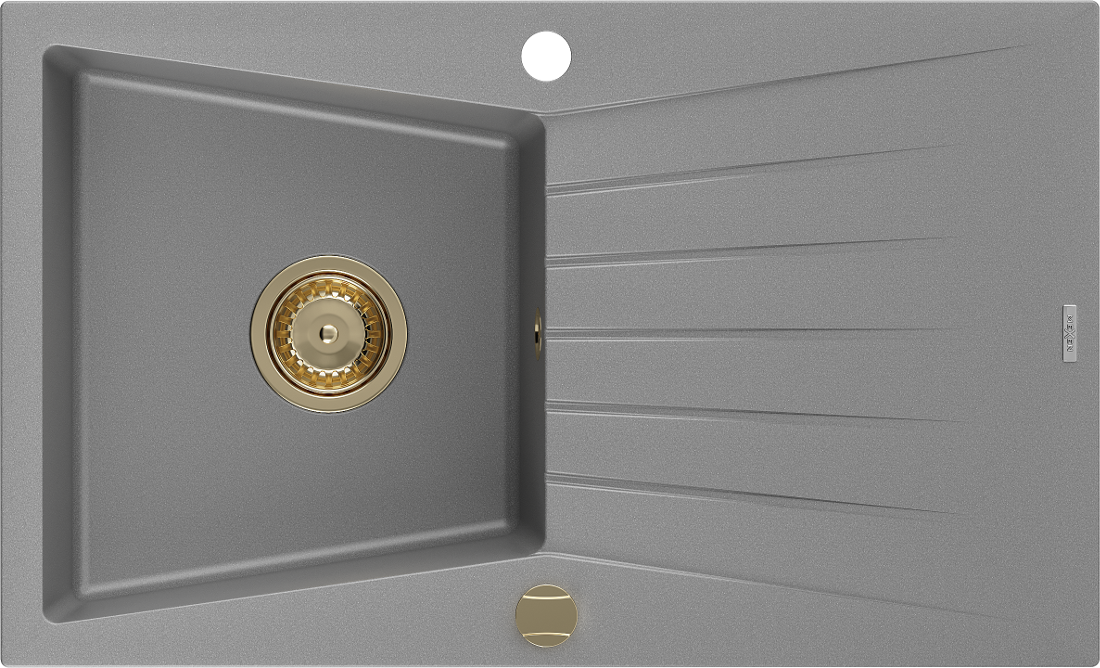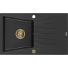 Mexen Cesar évier en granit 1 bac avec égouttoir 775 x 470 mm, gris, siphon doré - 6514771010-71-G