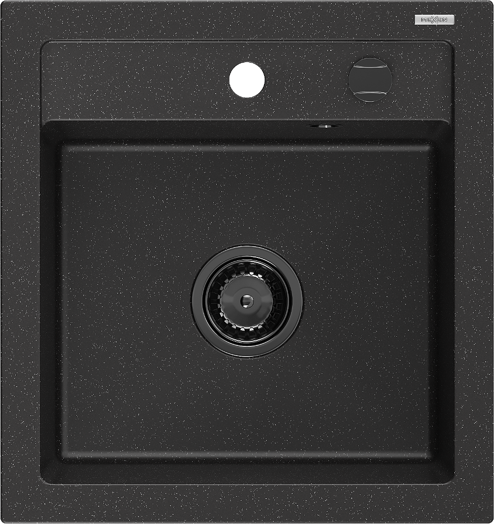 Mexen Vito évier en granit 1-bac 520 x 490 mm, noir/argent métallisé, siphon noir - 6503521000-73-B