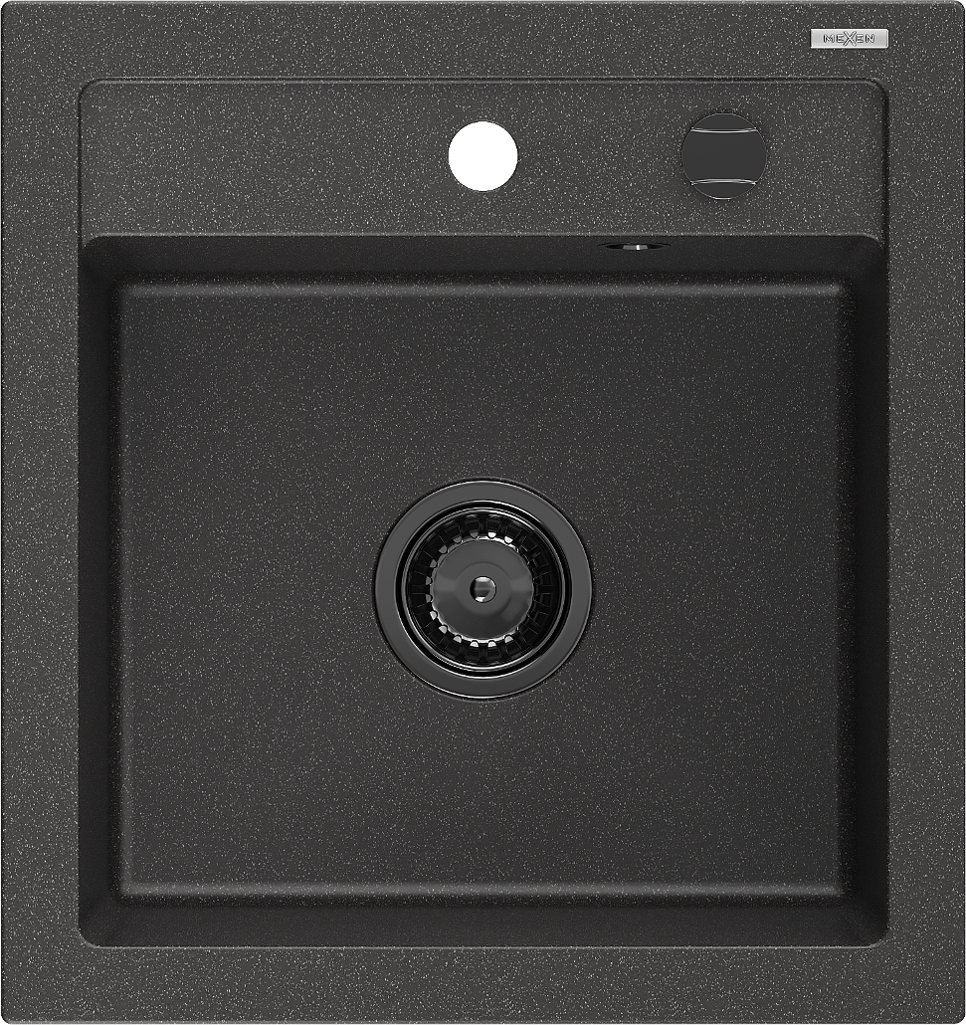 Mexen Vito évier en granit 1 bac 520 x 490 mm, noir moucheté, siphon noir - 6503521000-76-B