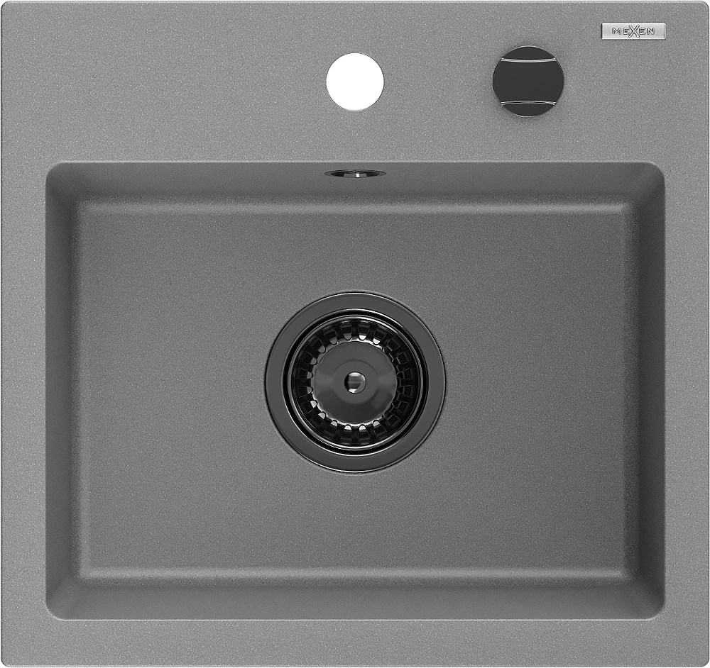 Mexen Milo évier en granit 1 bac 435 x 410 mm, gris, siphon noir - 6505441000-71-B
