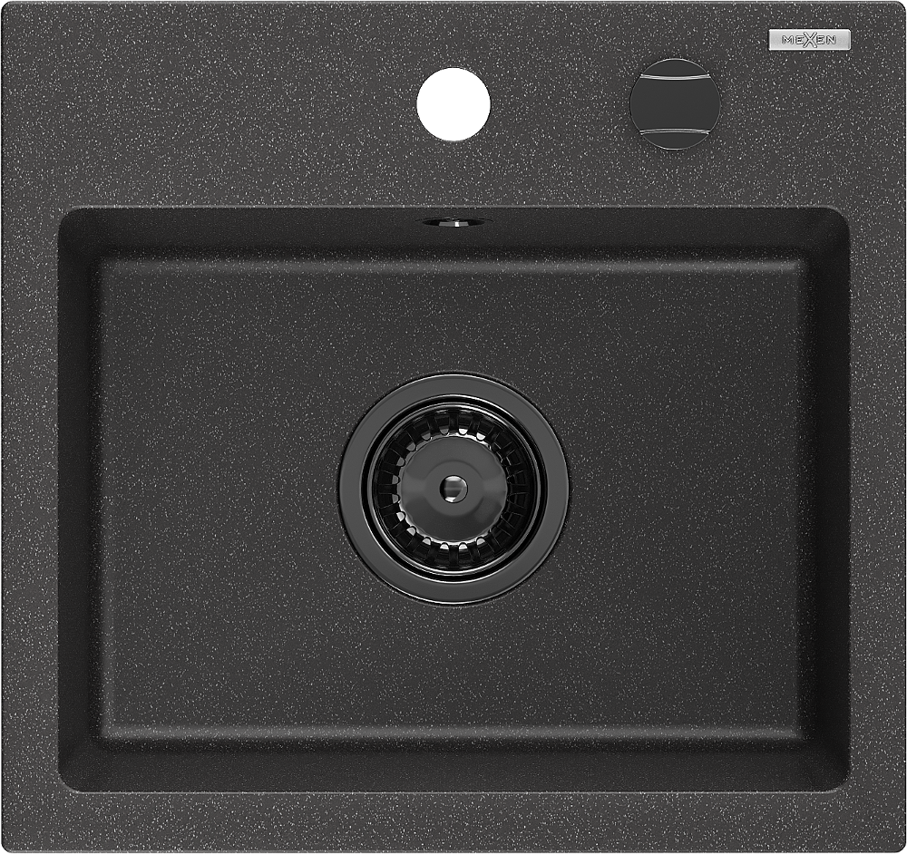 Mexen Milo évier en granit 1 bac 435 x 410 mm, noir moucheté, siphon noir - 6505441000-76-B