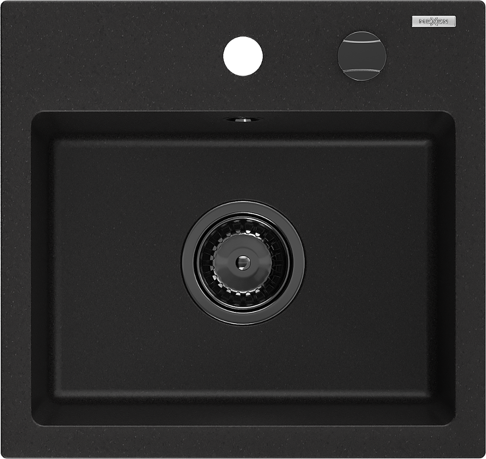 Mexen Milo évier en granit 1 bac 435 x 410 mm, noir, siphon noir - 6505441000-77-B
