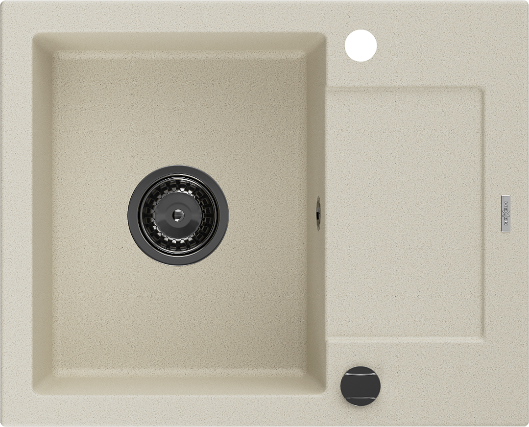 Mexen Enzo évier en granit 1 bac avec égouttoir 576 x 465 mm, beige, siphon noir - 6506571005-69-B