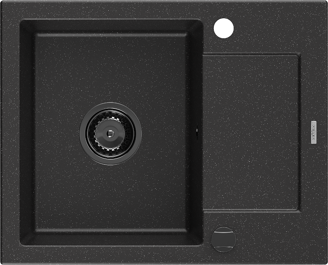Mexen Enzo évier en granit 1 bac avec égouttoir 576 x 465 mm, noir/argent métallisé, siphon noir - 6506571005-73-B
