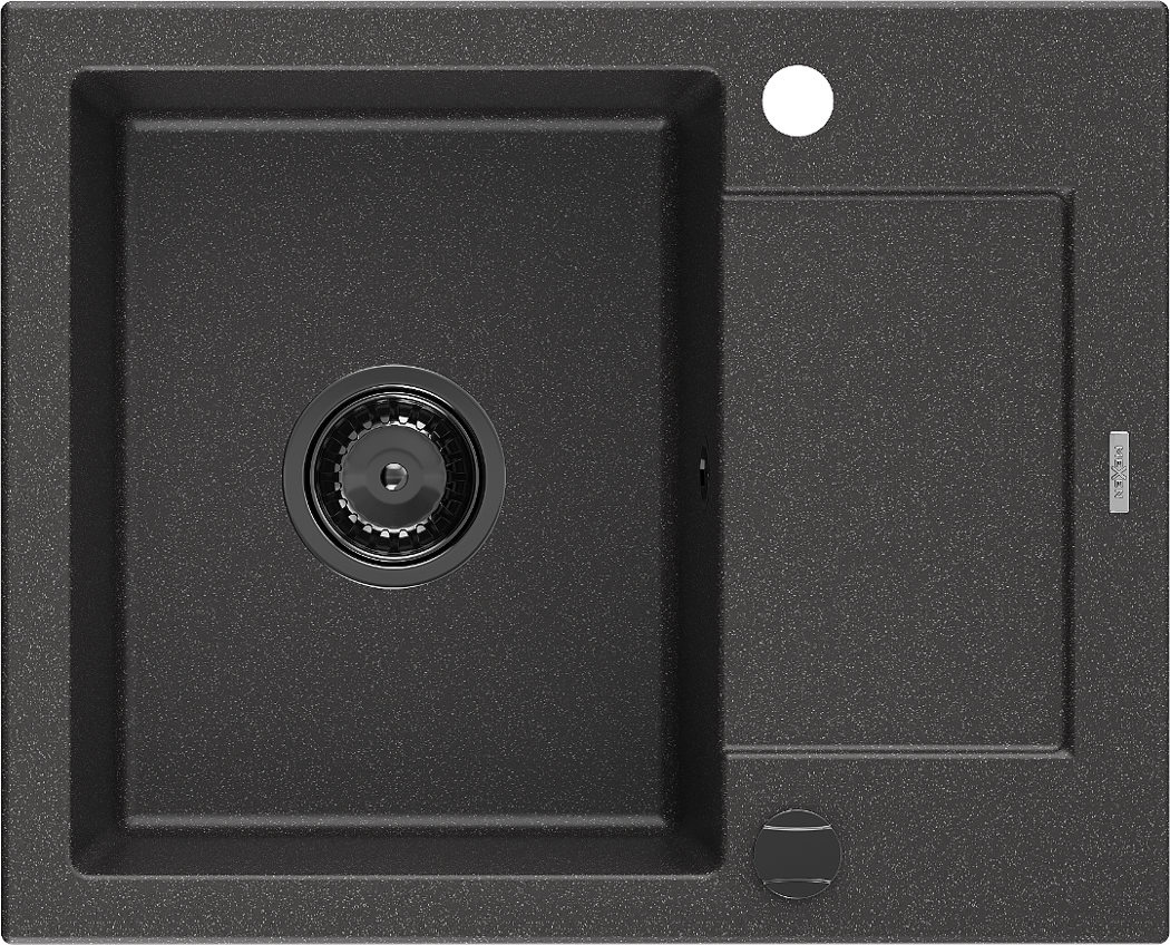 Mexen Enzo évier en granit 1 bac avec égouttoir 576 x 465 mm, noir moucheté, siphon noir - 6506571005-76-B