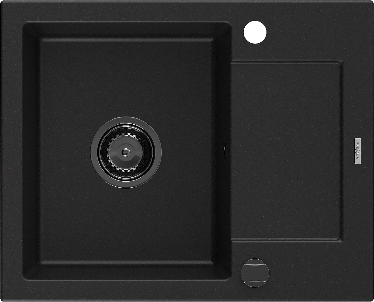 Mexen Enzo évier en granit 1 bac avec égouttoir 576 x 465 mm, noir, siphon noir - 6506571005-77-B