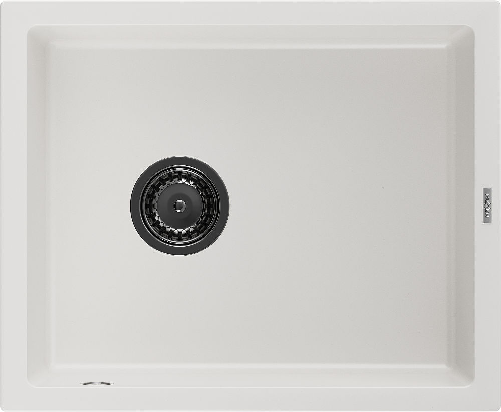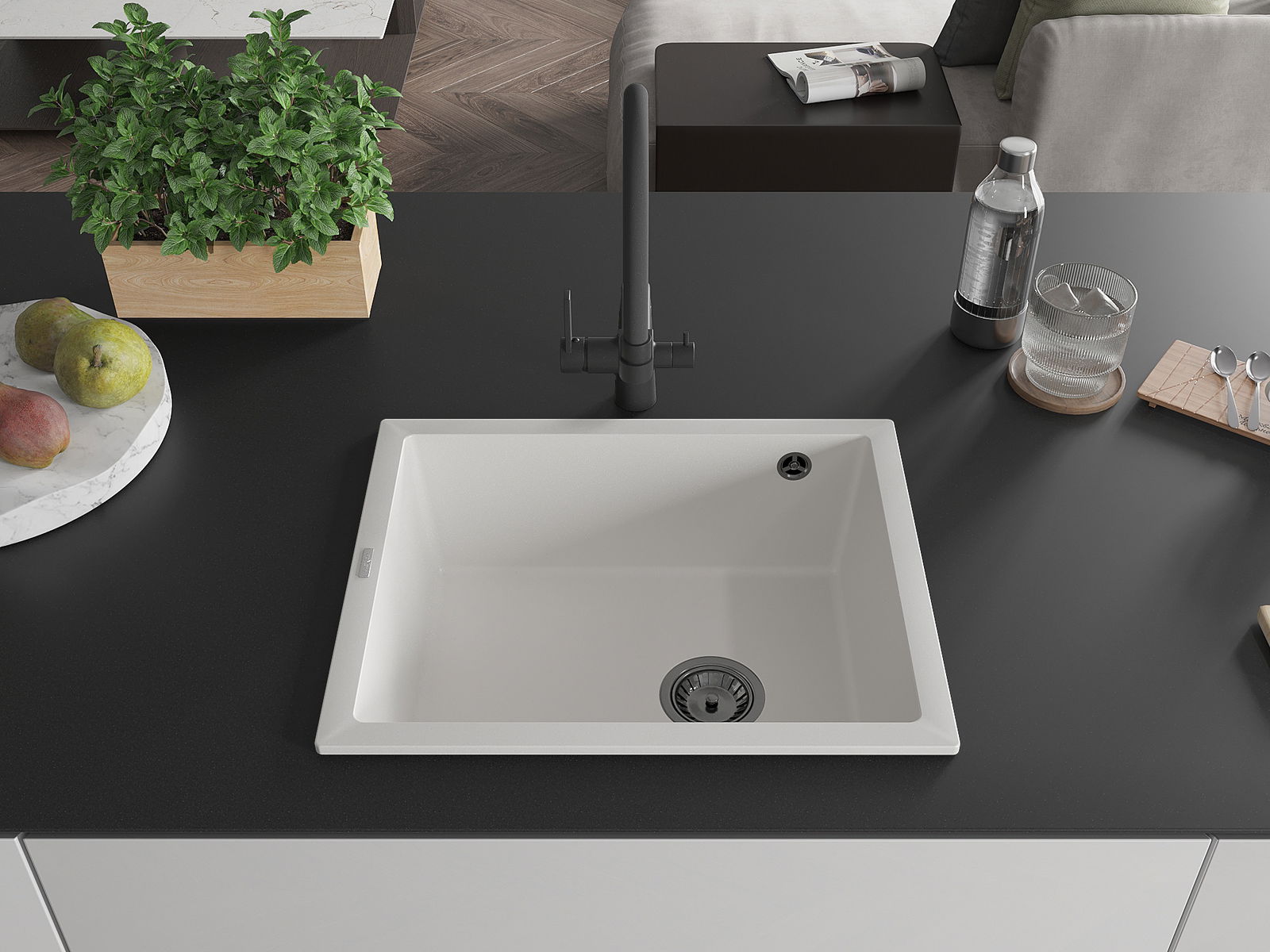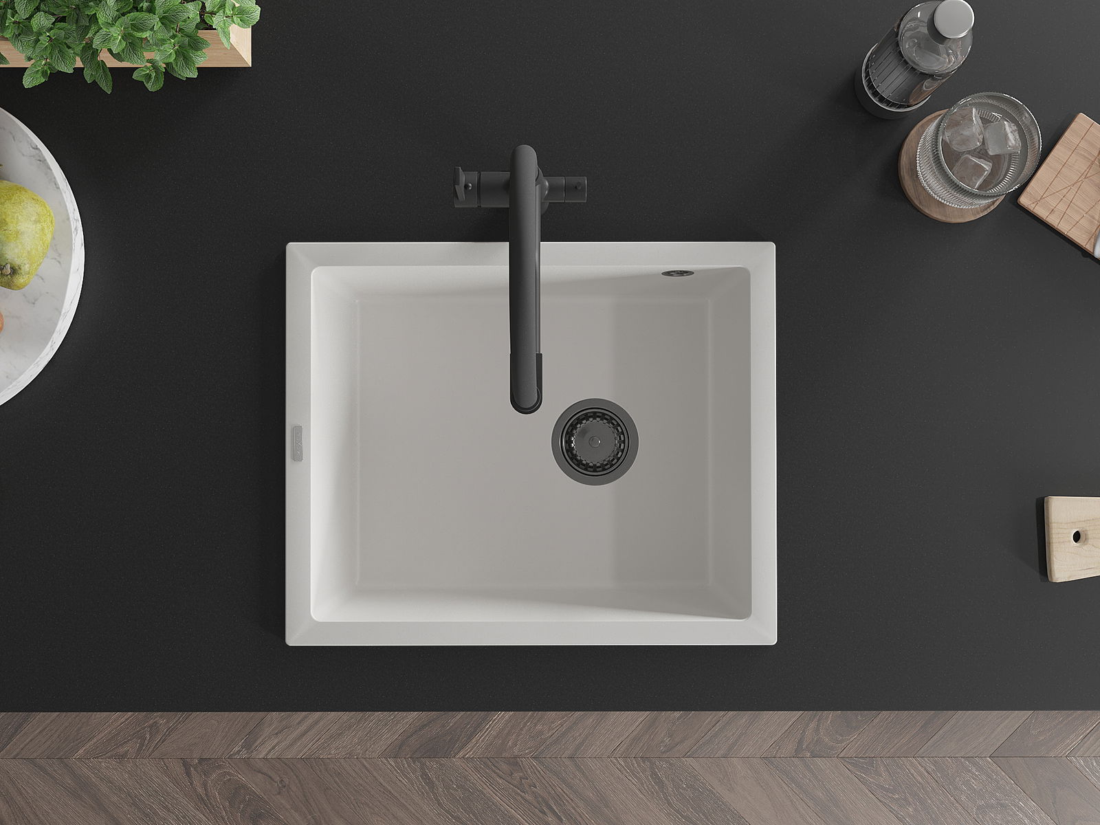 Mexen Pedro évier en granit 1 bac 560 x 460 mm, blanc, siphon noir - 6508561000-20-B