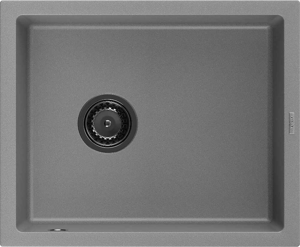 Mexen Pedro évier en granit à 1 bac 560 x 460 mm, gris, siphon noir - 6508561000-71-B