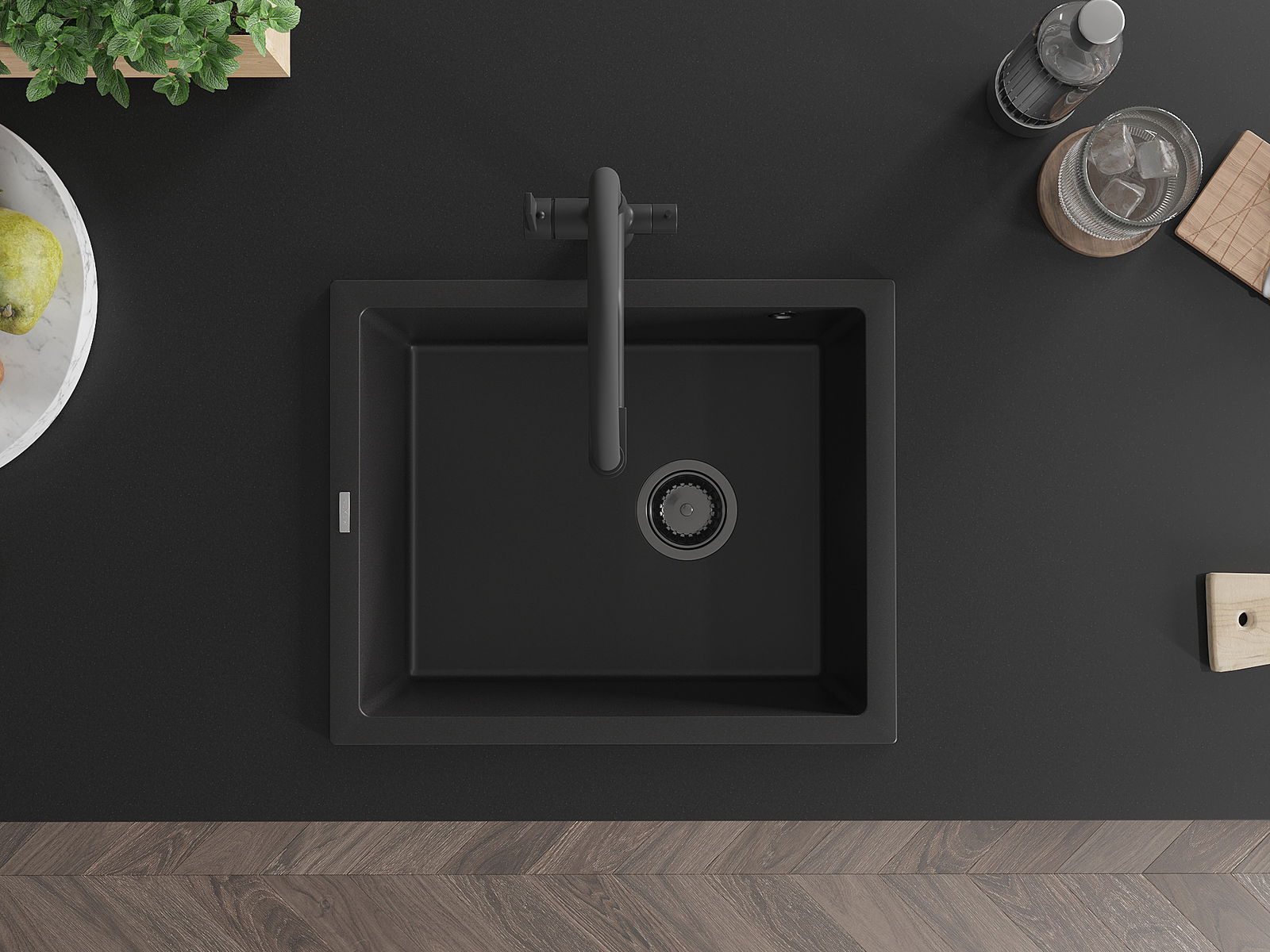 Mexen Pedro évier en granit à 1 bac 560 x 460 mm, noir, siphon noir - 6508561000-77-B