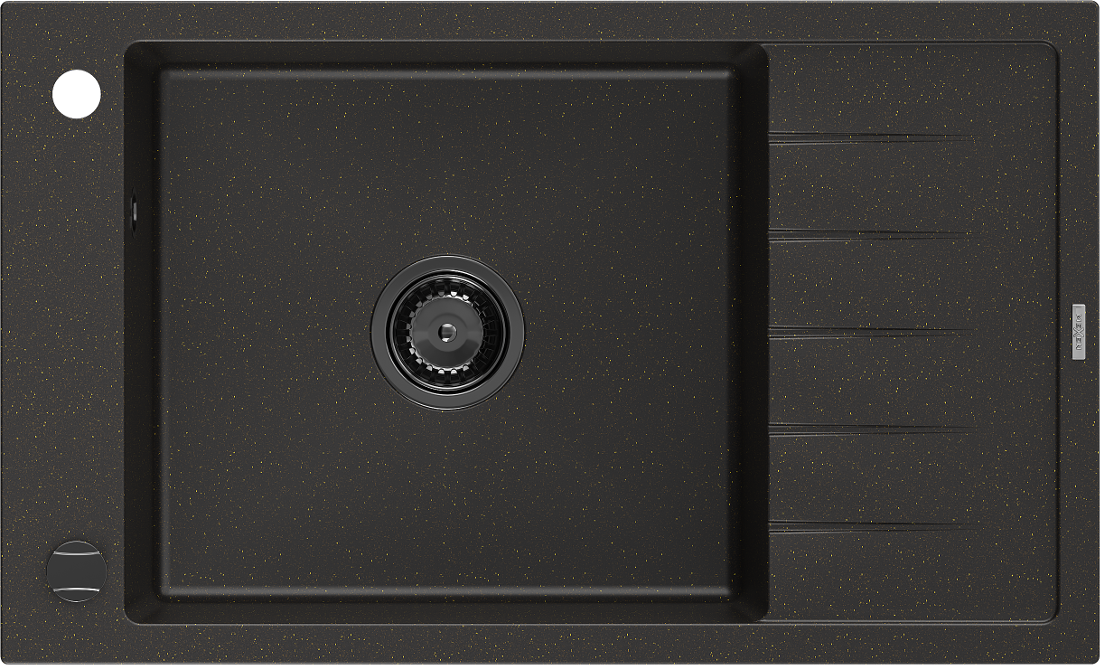 Mexen Elias évier en granit 1 bac avec égouttoir 795 x 480 mm, noir/doré métallisé, siphon noir - 6511791005-75-B