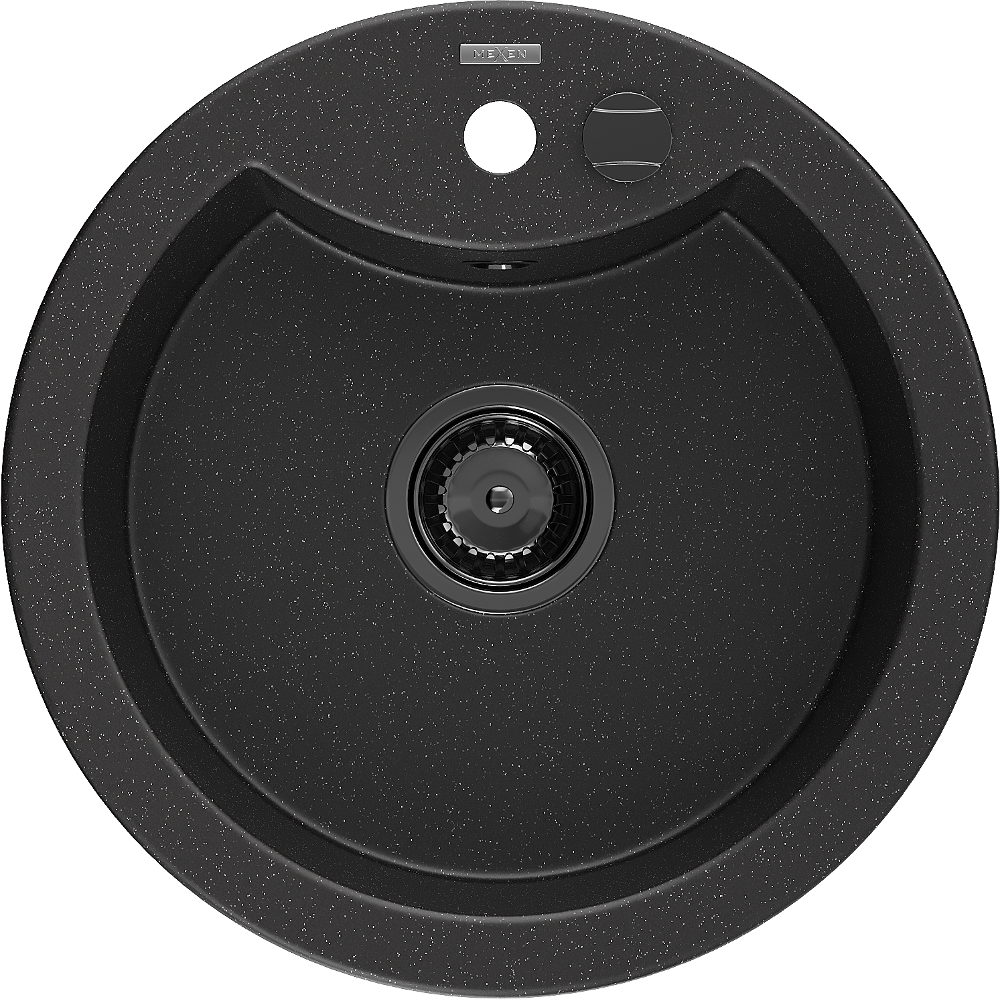 Mexen Diego évier en granit 1 bac 488 x 480 mm, noir/métallisé argent, siphon noir - 6512481000-73-B