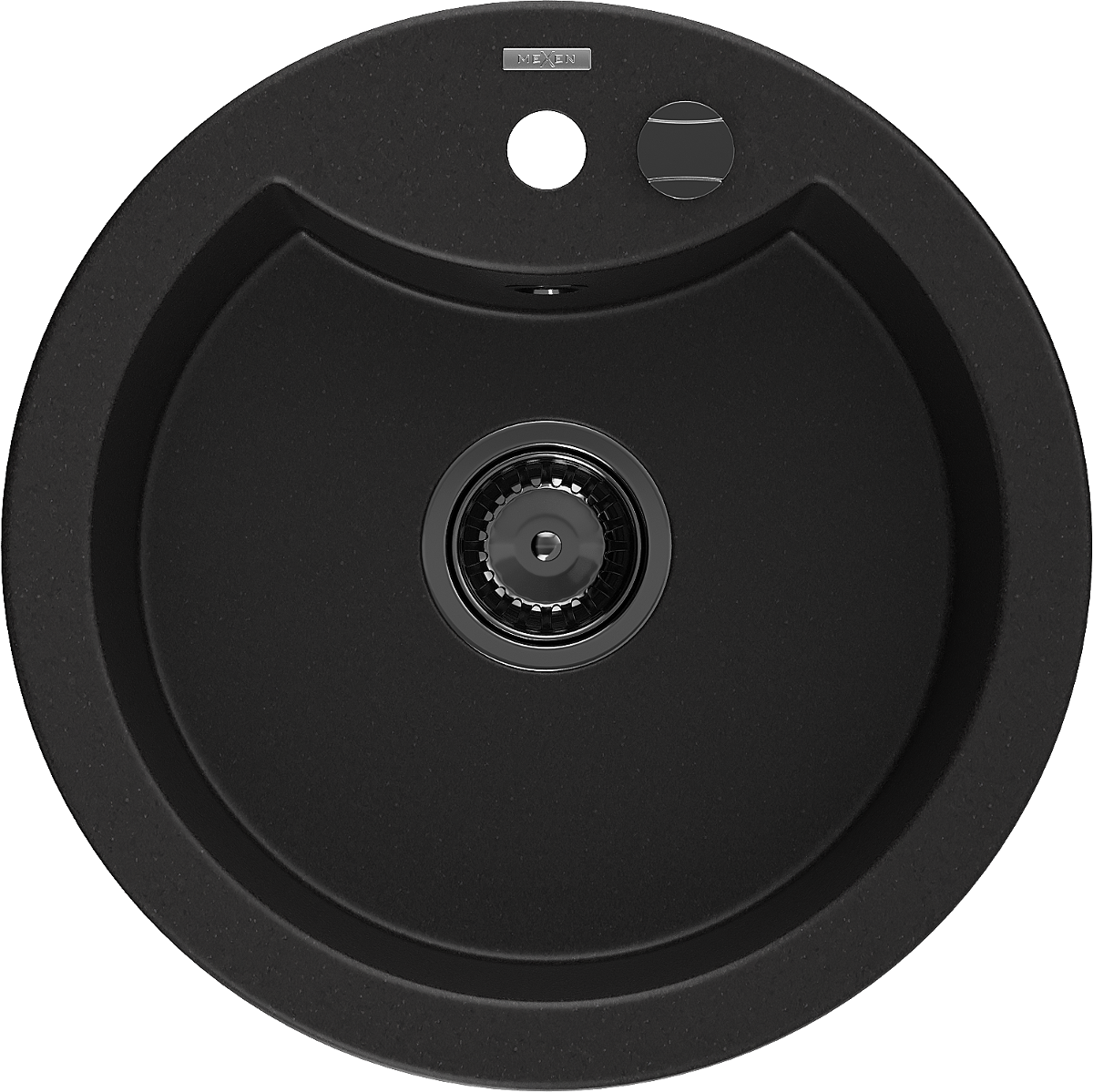 Mexen Diego évier en granit 1 bac 488 x 480 mm, noir, siphon noir - 6512481000-77-B