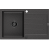 Mexen Bruno évier en granite à 1 bac avec égouttoir 795 x 495 mm, noir/métallisé argent, siphon noir - 6513791010-73-B
