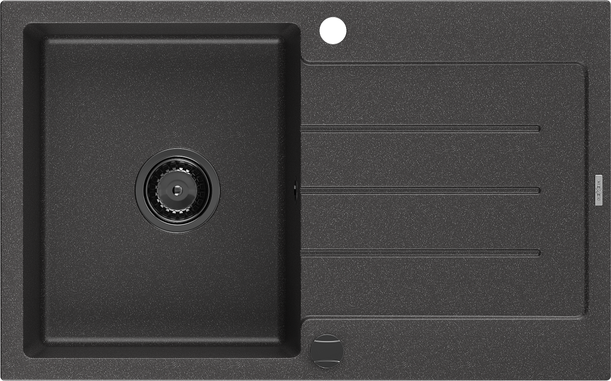Mexen Bruno évier en granit 1 bac avec égouttoir 795 x 495 mm, noir moucheté, siphon noir - 6513791010-76-B