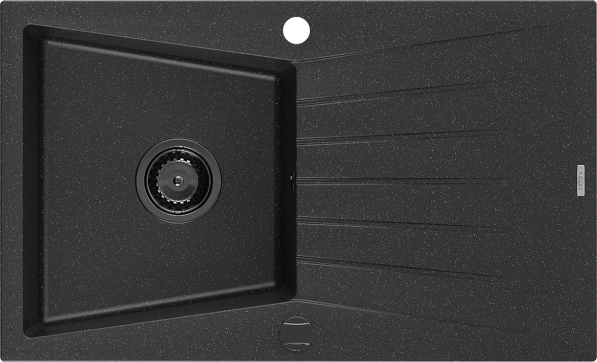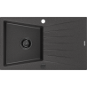 Mexen Cesar évier en granit 1 bac avec égouttoir 775 x 470 mm, noir/argent métallisé, siphon noir - 6514771010-73-B