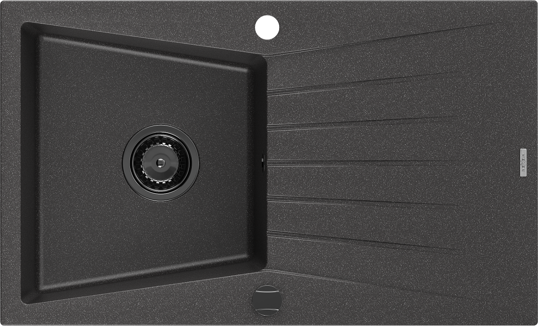 Mexen Cesar évier en granit 1 bac avec égouttoir 775 x 470 mm, noir moucheté, siphon noir - 6514771010-76-B