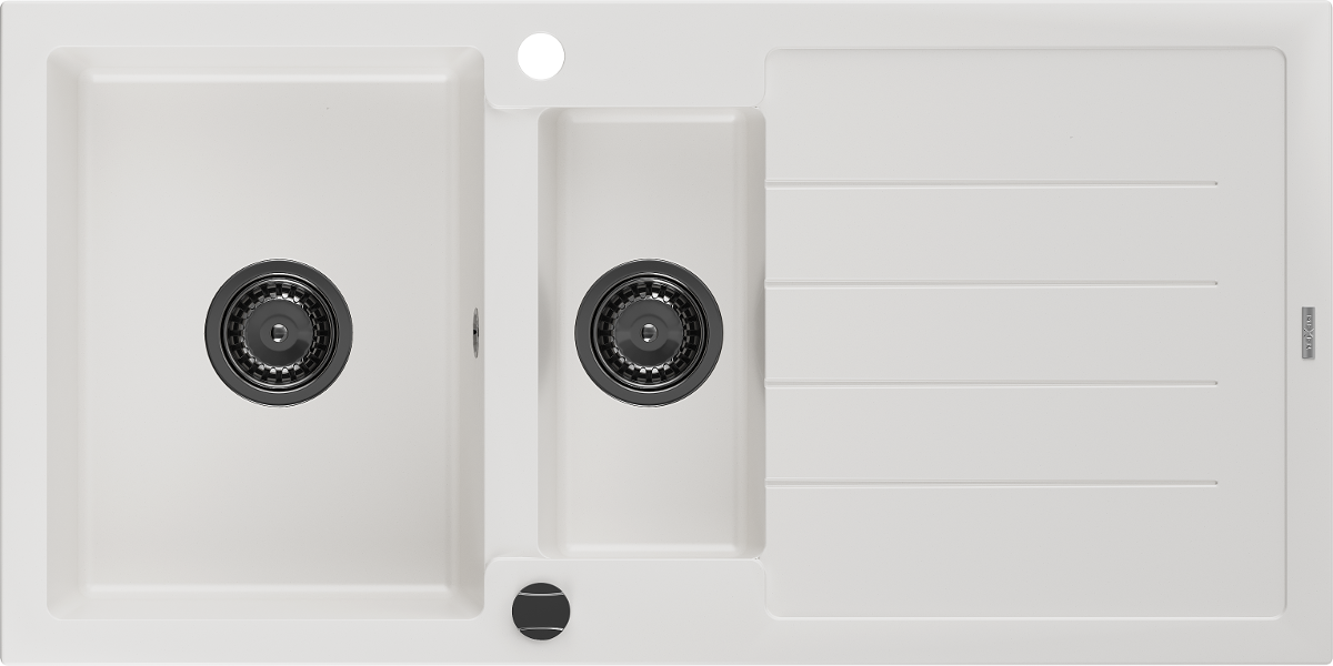 Mexen Andres évier en granit 1,5 bac avec égouttoir 1000 x 500 mm, blanc, siphon noir - 6515101510-20-B