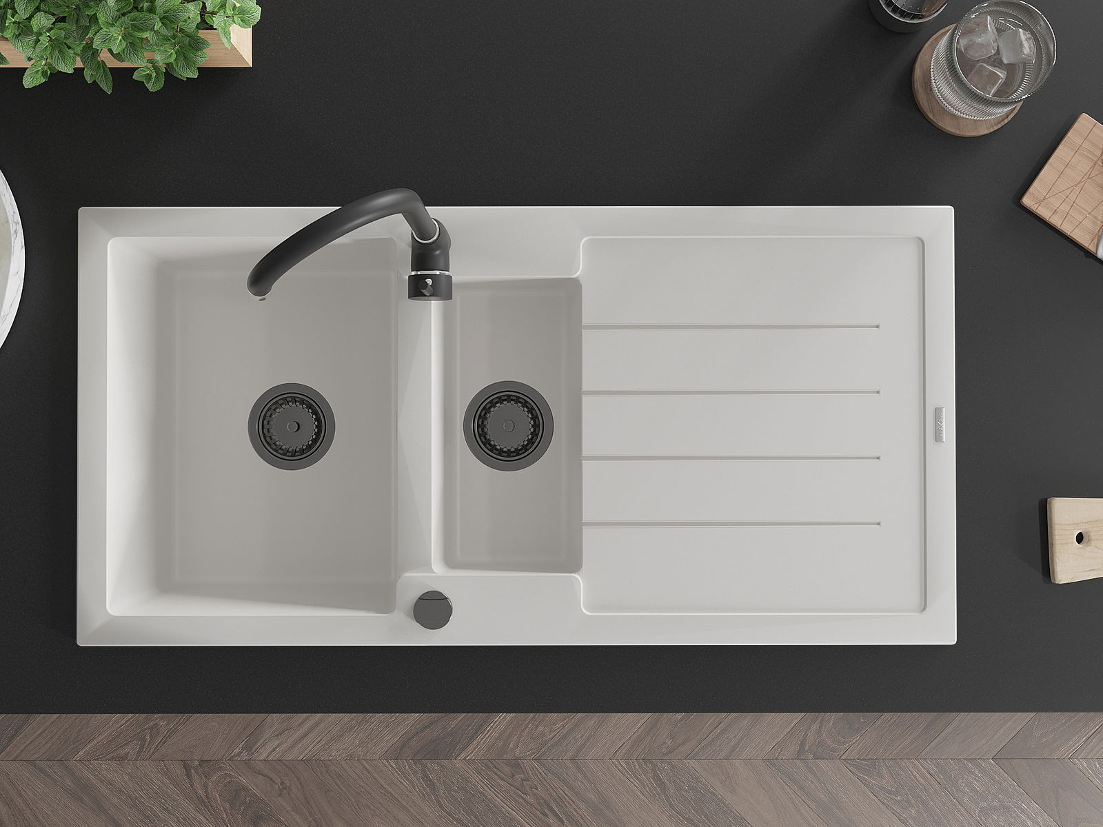 L'évier est fabriqué en granit de haute qualité. Il constitue un complément élégant et surtout pratique pour toute cuisine, quel que soit son style. La qualité et la durabilité du granit garantissent de nombreuses années d'utilisation.