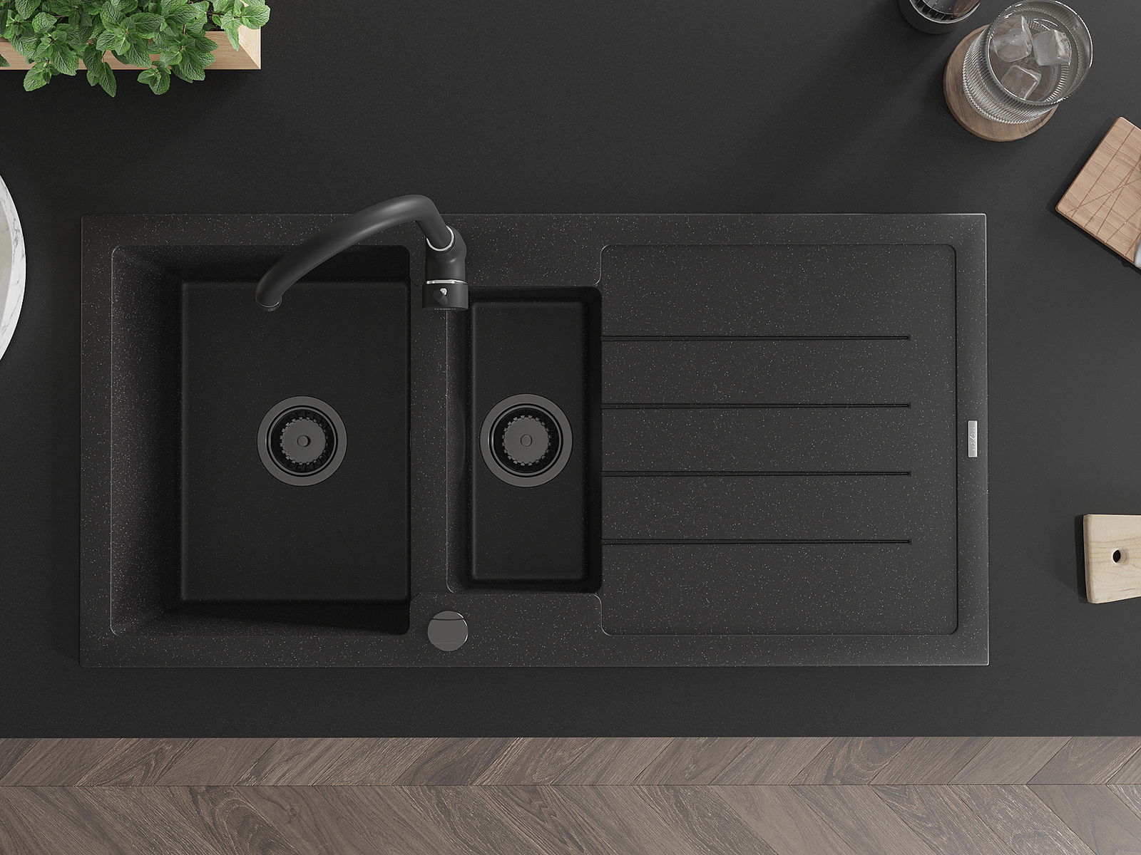Mexen Andres évier en granit 1,5 bac avec égouttoir 1000 x 500 mm noir/argent métallisé siphon noir - 6515101510-73-B