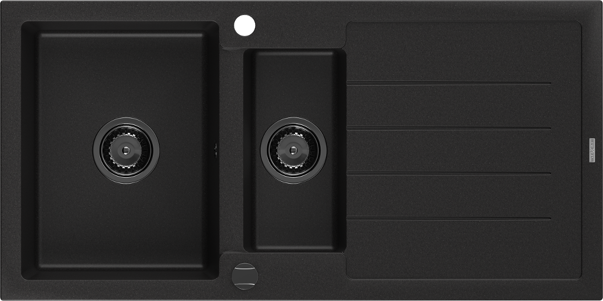 Mexen Andres évier en granit 1,5 cuve avec égouttoir 1000 x 500 mm noir, siphon noir - 6515101510-77-B