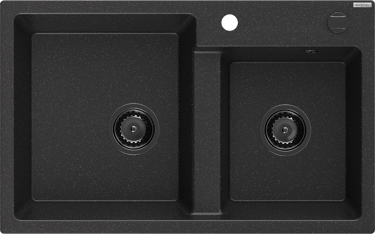 Mexen Tomas évier en granit 2 bacs 800 x 500 mm, noir/argent métallisé, siphon noir - 6516802000-73-B