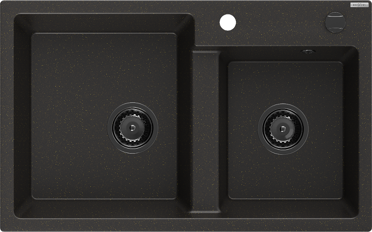 Mexen Tomas évier en granit à 2 cuves 800 x 500 mm, noir/doré métallisé, siphon noir - 6516802000-75-B