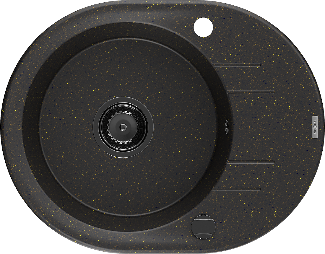 Mexen Kevin évier en granit 1 bac avec égouttoir 586 x 458 mm, noir/or métallisé, siphon noir - 6517581005-75-B