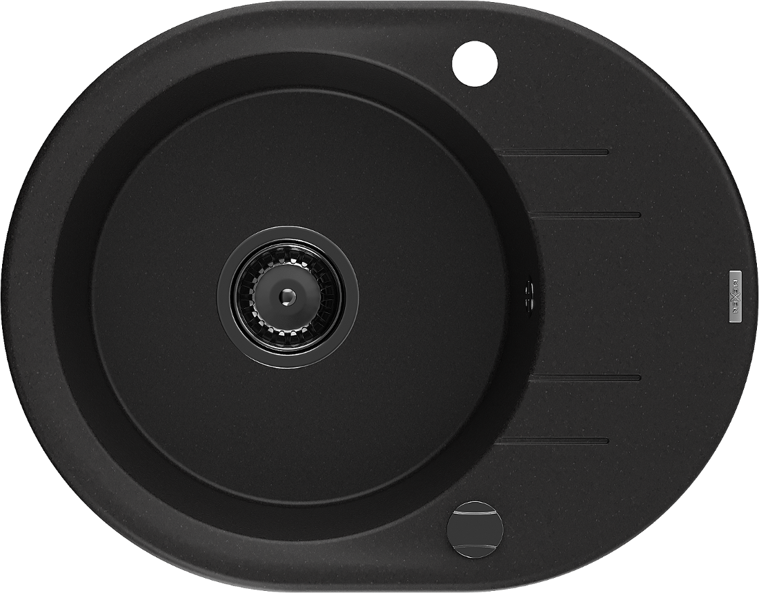 Mexen Kevin évier en granit à 1 bac avec égouttoir 586 x 458 mm, noir, siphon noir - 6517581005-77-B