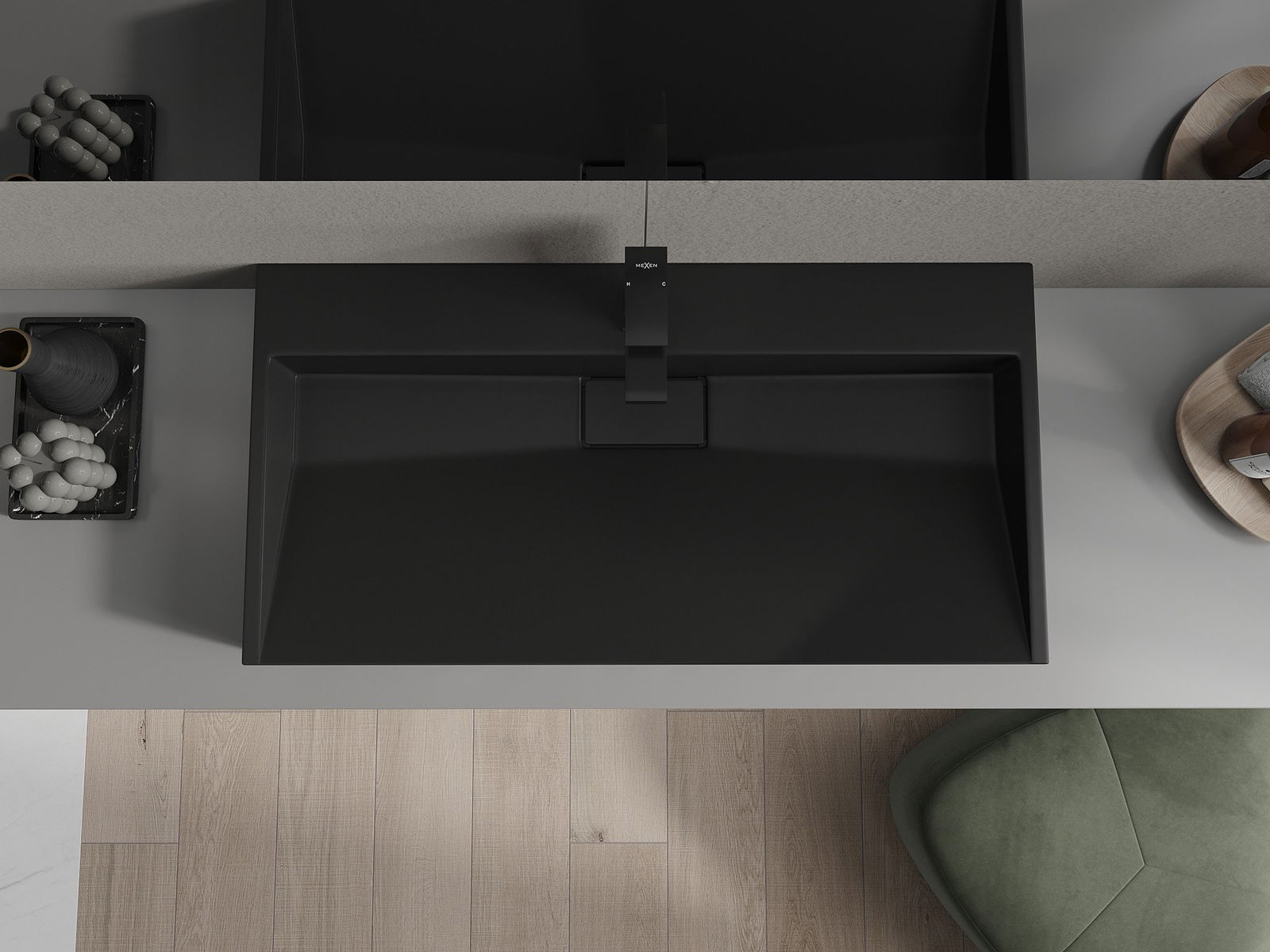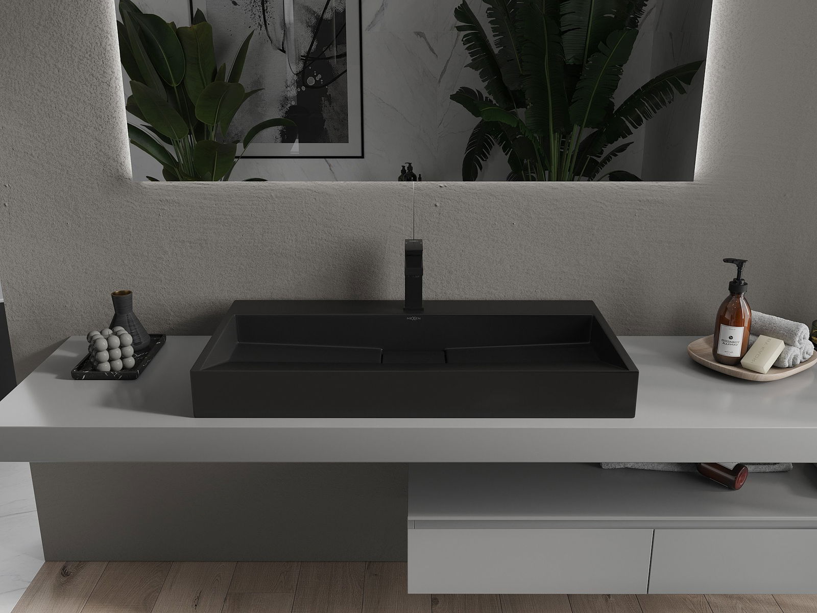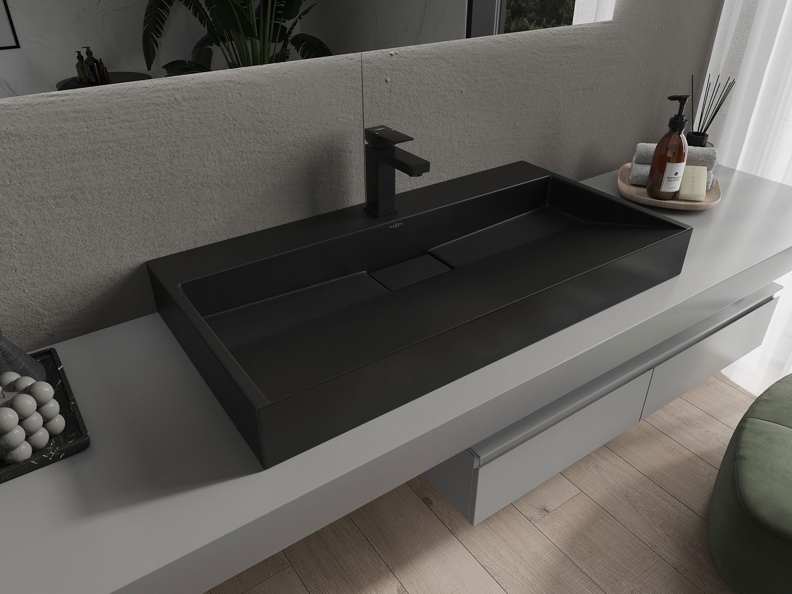 Mexen Ava lavabo à poser en conglomérat 1/O 90 x 46 cm, noir - 23019071
