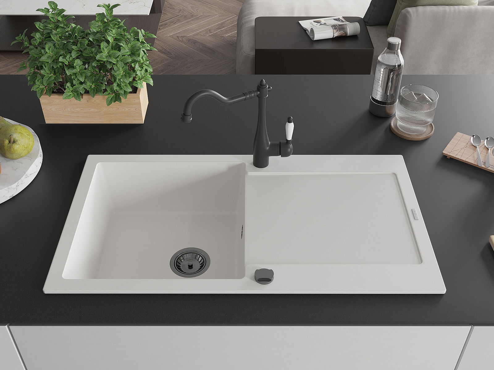 L'évier est fabriqué en granit de haute qualité. Il constitue un complément élégant et surtout pratique pour toute cuisine, quel que soit son style. La qualité et la durabilité du granit garantissent de nombreuses années d'utilisation.
