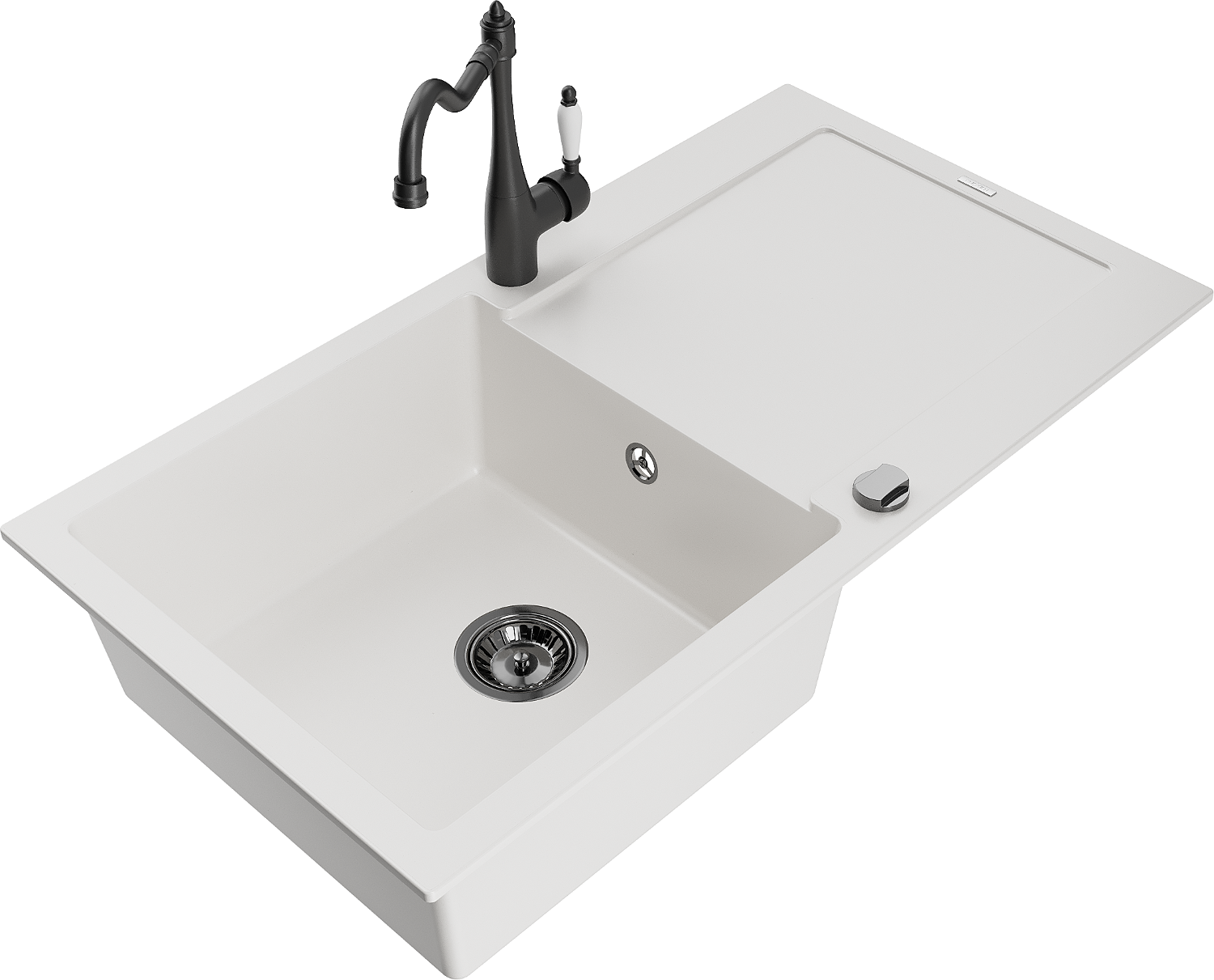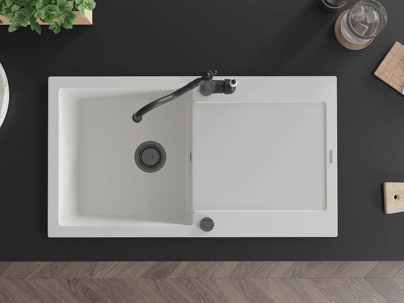 Mexen Leo évier en granit à 1 bac avec égouttoir et robinet de cuisine Carla, blanc - 6501-20-670700-70